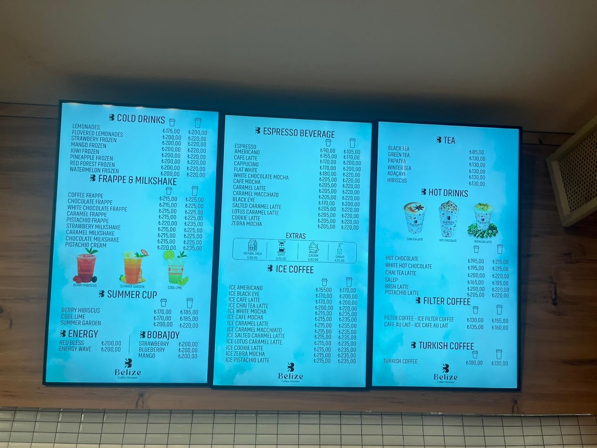 Belize Coffee Roaster Menu