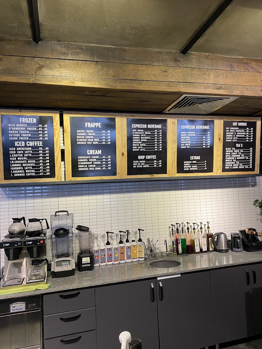 The menu primarily offers a variety of coffee beverages, suitable for coffee breaks and casual visits. Coffee options include espresso-based drinks such as cappuccinos and other personalized coffee creations prepared by skilled baristas. The menu may also include light snacks or small food items commonly found in cafes, although specific details are not provided.